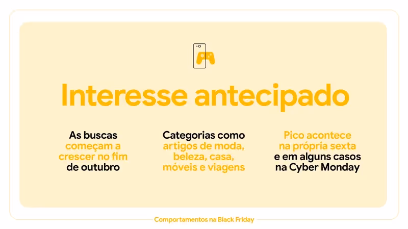 Fonte: Dados internos GoogleA sugestão é que as empresas comecem a comunicar suas promoções e diferenciais com antecedência, oferecendo prévias dos descontos e criando expectativa no público. Campanhas de “esquenta” para a Black Friday podem ser extremamente eficazes para gerar engajamento e preparar os consumidores para o evento principal.